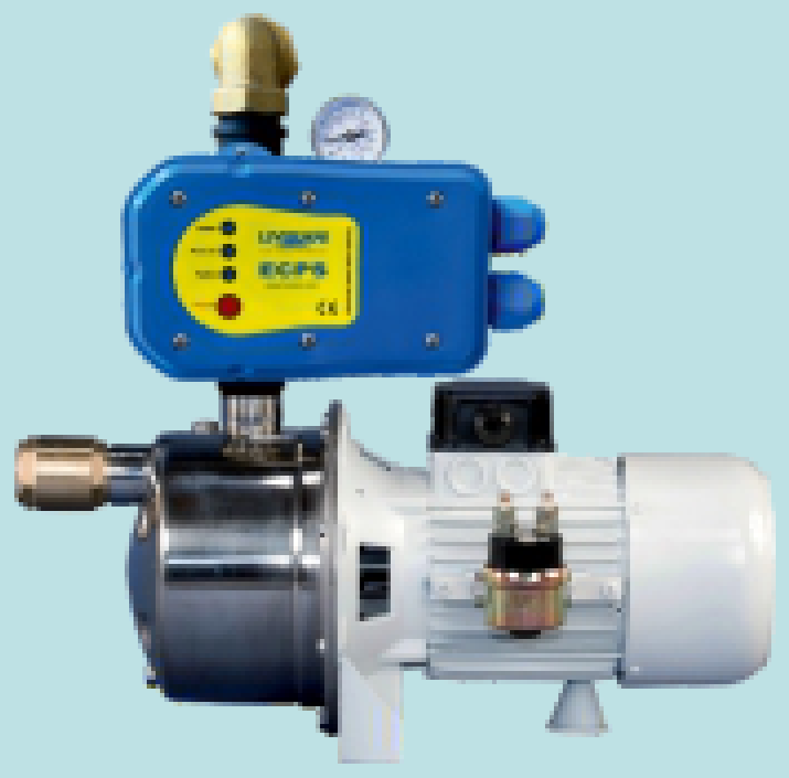 Pressure booster set with electronic control pressure system (ECPS) for automatic pump control. The ECPS automatically controls start and stop stages when pressure drops or water supply is interrupted.